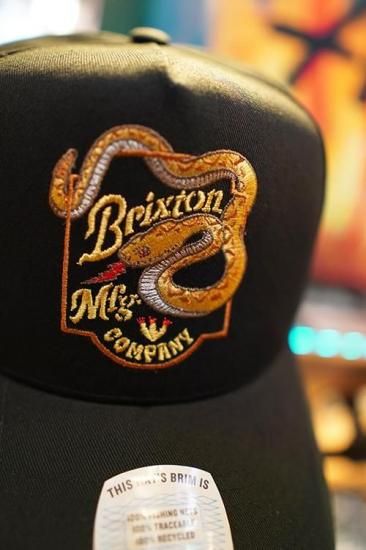 「BRIXTON」オリジナルアートワークを刺繍したスナップバックキャップ。