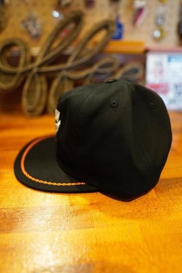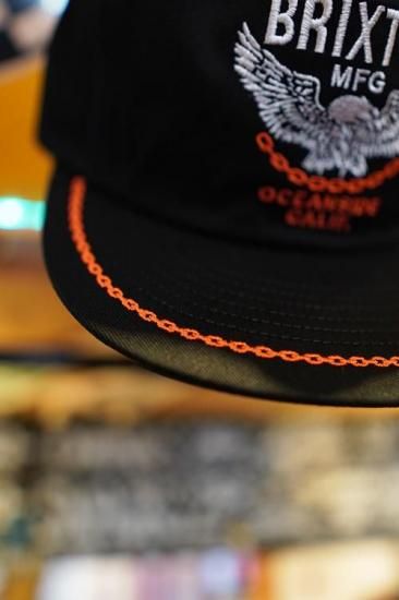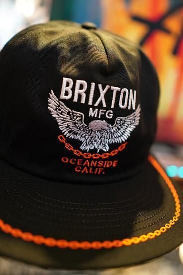 「BRIXTON」オリジナルアートワークを刺繍したスナップバックキャップ。