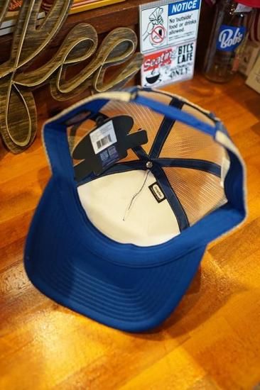 コラボレーションアイテムならではのロゴやアートワークをプリントしたメッショスナップバックキャップ。