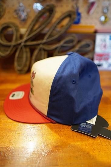 コラボレーションアイテムならではのロゴやアートワークのをプリントしたスナップバックキャップ。