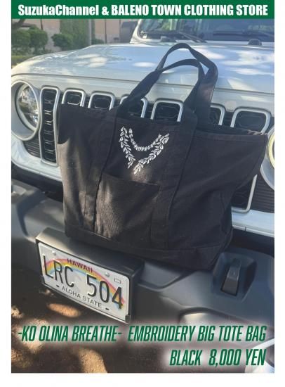 BALENO TOWN CLOTHING STORE × SuzukaChannel "KO OLINA BREATHE" EMBROIDERY BIG TOTE BAG (BLACK)