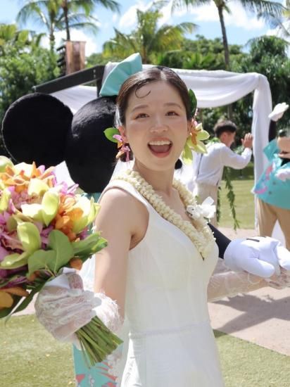 「SuzukaChannel」のスズカちゃんが、「コオリナ」にある「アウラニディズニーリゾート」で結婚式を挙げた際に、身に付けていた「ピカケ」「マイレレイ」をデザインにお越して、、「コオリナ」のそよ風を感じるデザインに仕上げました。
