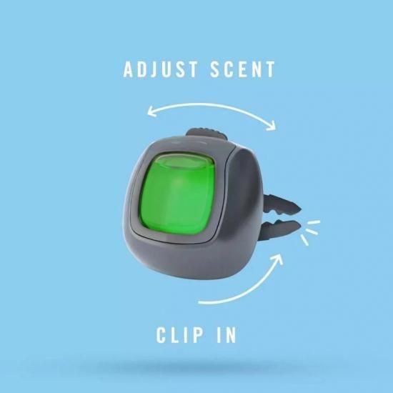 商品パッケージから取り出し、裏面のクリップを『カチッ』と音が鳴るまで押し上げてから車内のレジスターに取り付けてください。