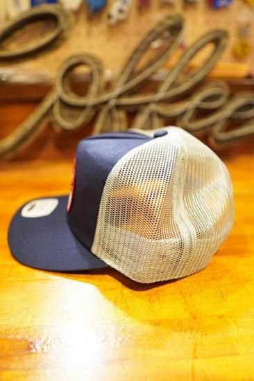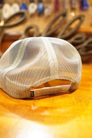 ミディアムプロファイルのトラッカーハット(メッシュキャップ)。