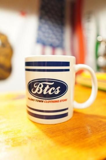 数多くのアパレルブランドもサンプリングする某自動車メーカーのロゴを当店もサンプリングしてデザインした人気の「BTCS OVAL LOGO」をあしらった陶器製オリジナルマグカップです。